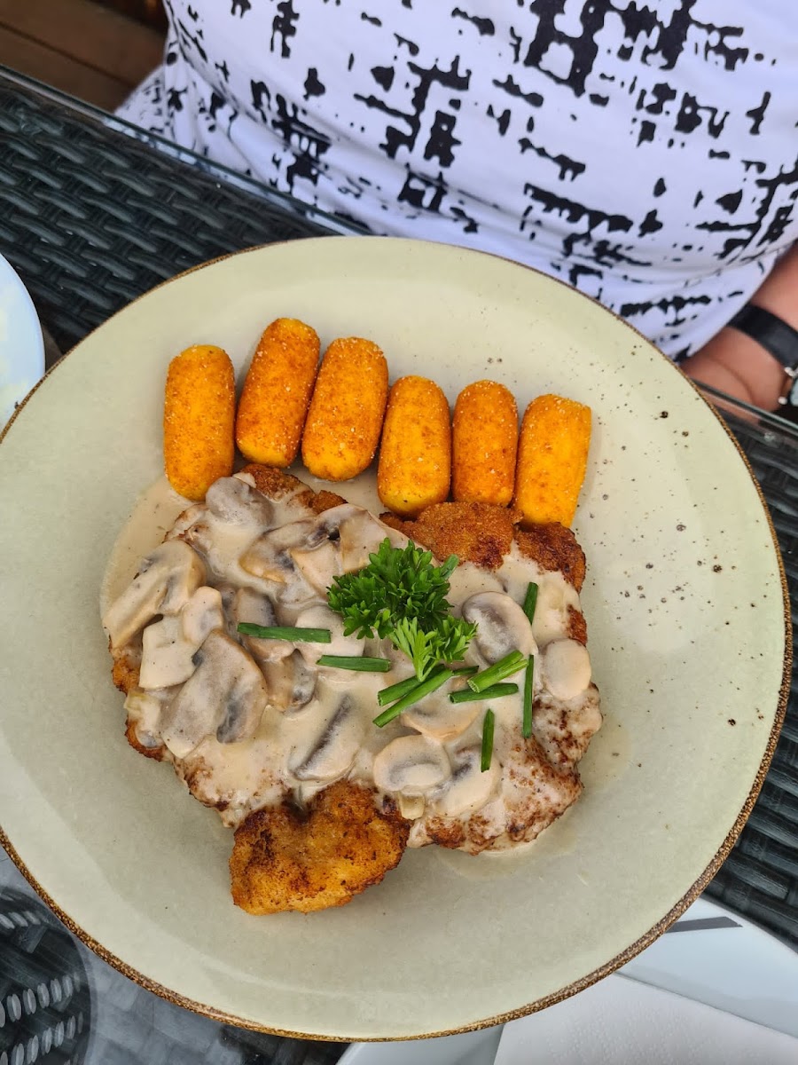 Wahnsinnig leckeres Essen. Fleisch (Schnitzel) war von bester Qualität und schön langsam rausgebacken. Superfeine Pommes. Sehr schmackhaftes Bruschetta. Frische Salate, keine Eimerware. Absolut faire Preise. Blick auf den See und in die Natur. Hatten diese Qualität hier so nicht erwartet. Absoluter Geheimtip!